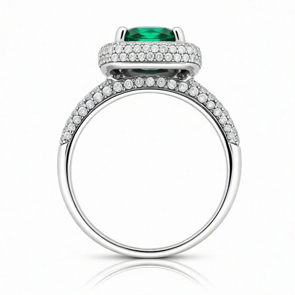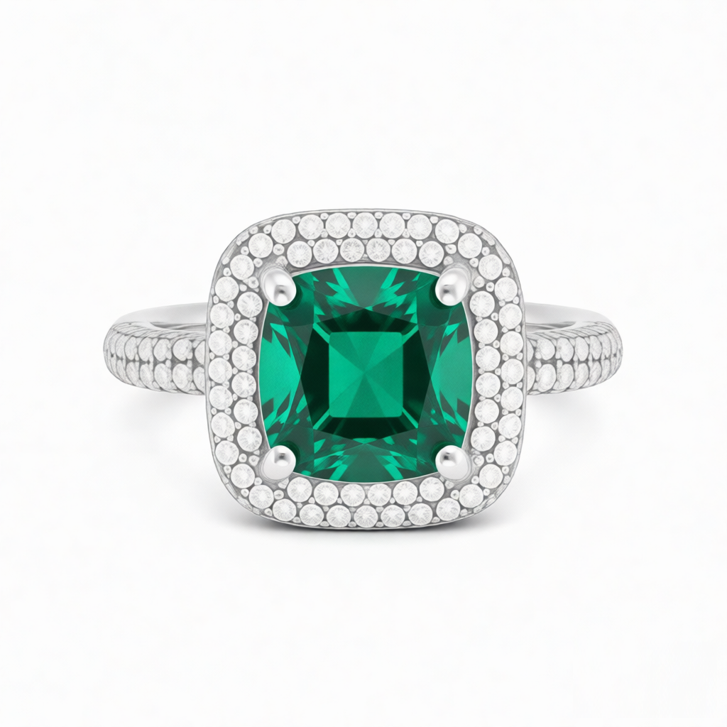 GRANDEUR ANTIQUE CUSHION LAB GROWN EMERALD RING
