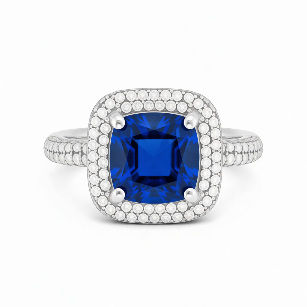 Gemstone: Lab Grown Sapphire / 8 hearts 8 arrows simulated diamonds