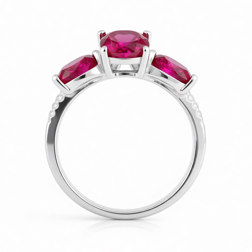 GRANDEUR MARQUISE ROUND PEAR LAB GROWN RUBY RING
