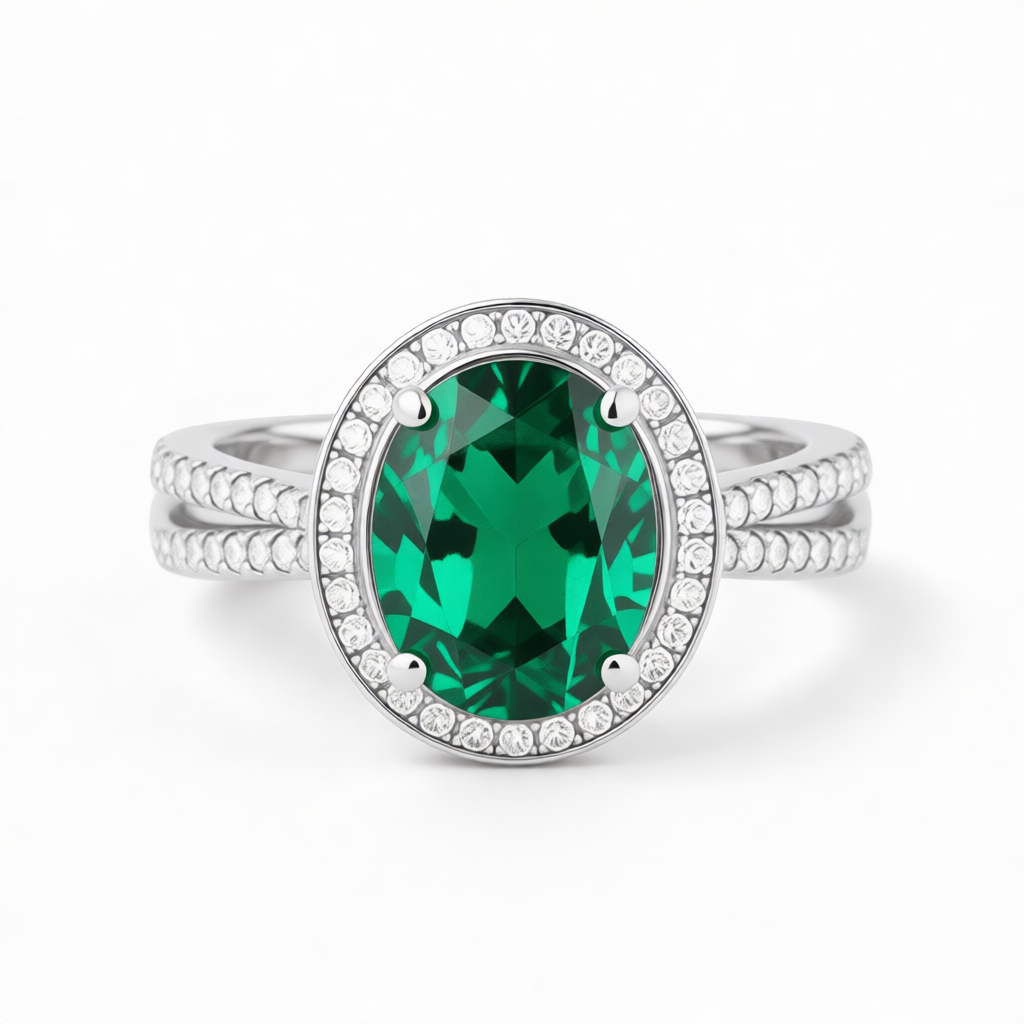 GRANDEUR OVAL LAB GROWN EMERALD RING