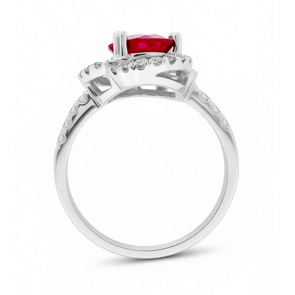 Gemstone: Lab Grown Ruby / 8 hearts 8 arrows simulated diamonds