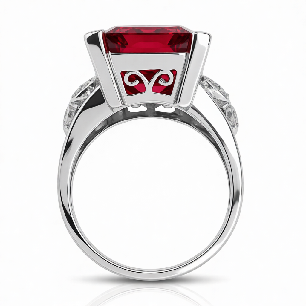 GRANDEUR EMERALD CUT LAB GROWN RUBY RING