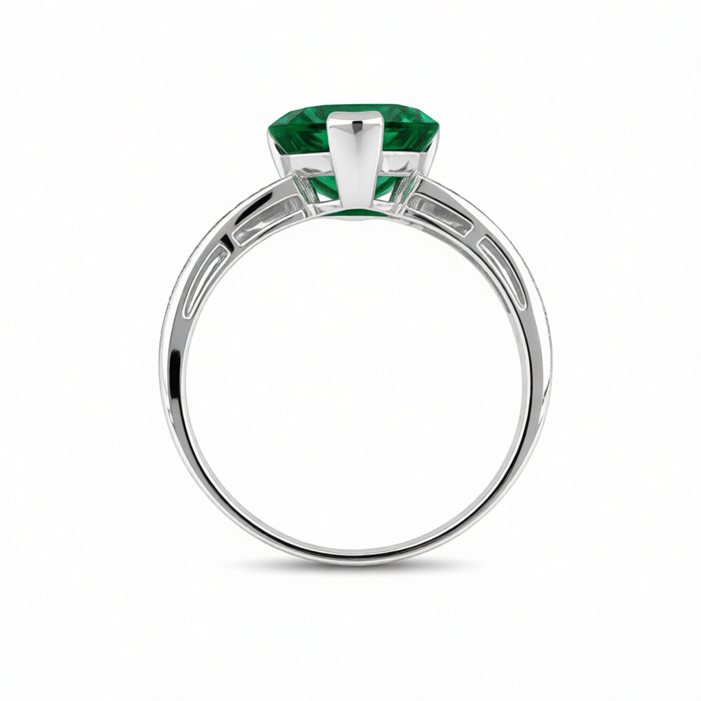 Gemstone: Lab Grown Emerald / 8 hearts 8 arrows simulated diamonds